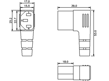 - European IEC 60320/C13 Right Angle Connector, Low Profile