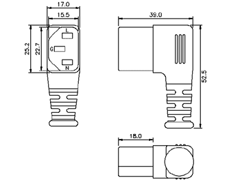 European IEC 60320/C13 Right Angle Connector, Low Profile